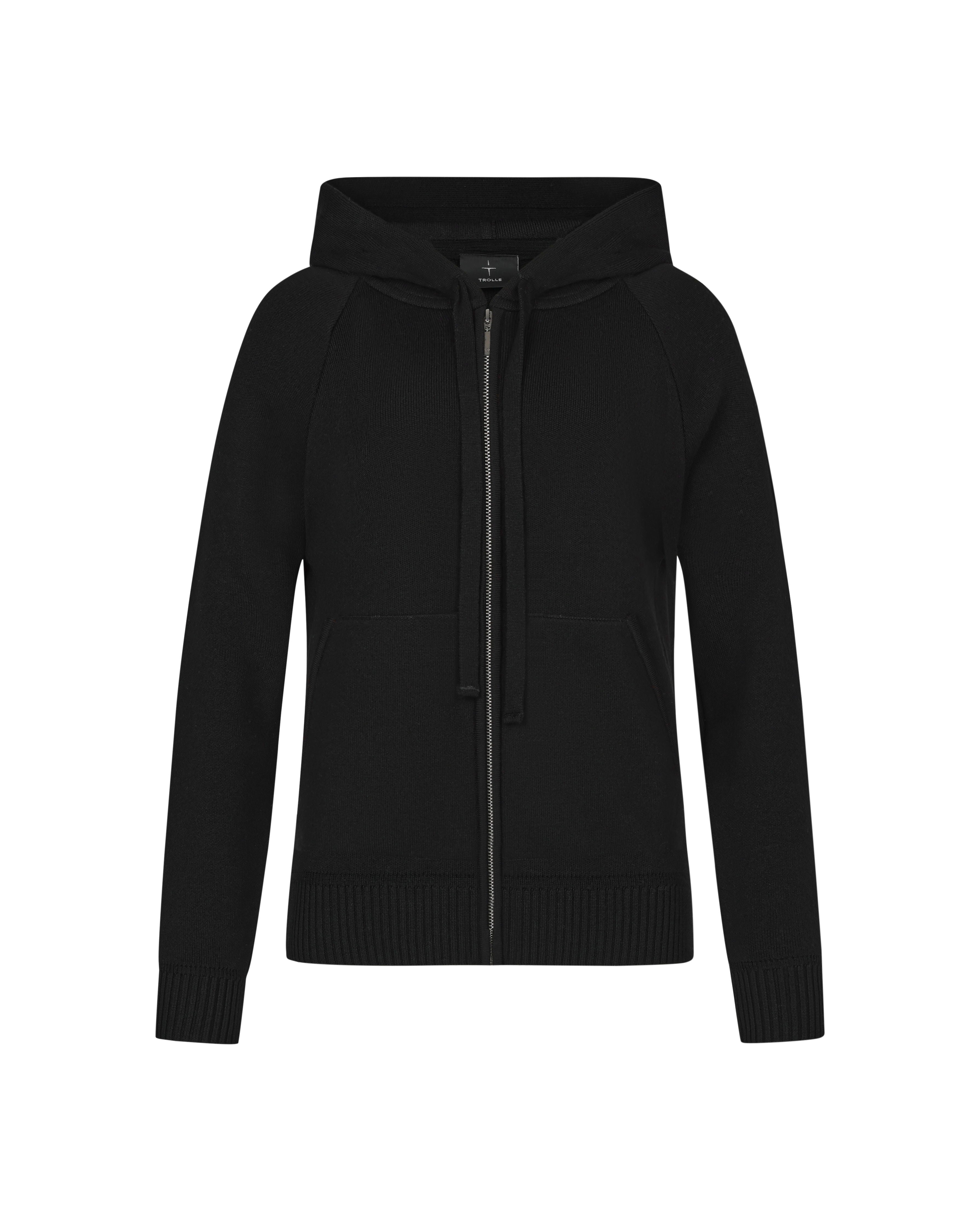 Loose Fit Extra Fine Merino Zip Hoodie Female - Black