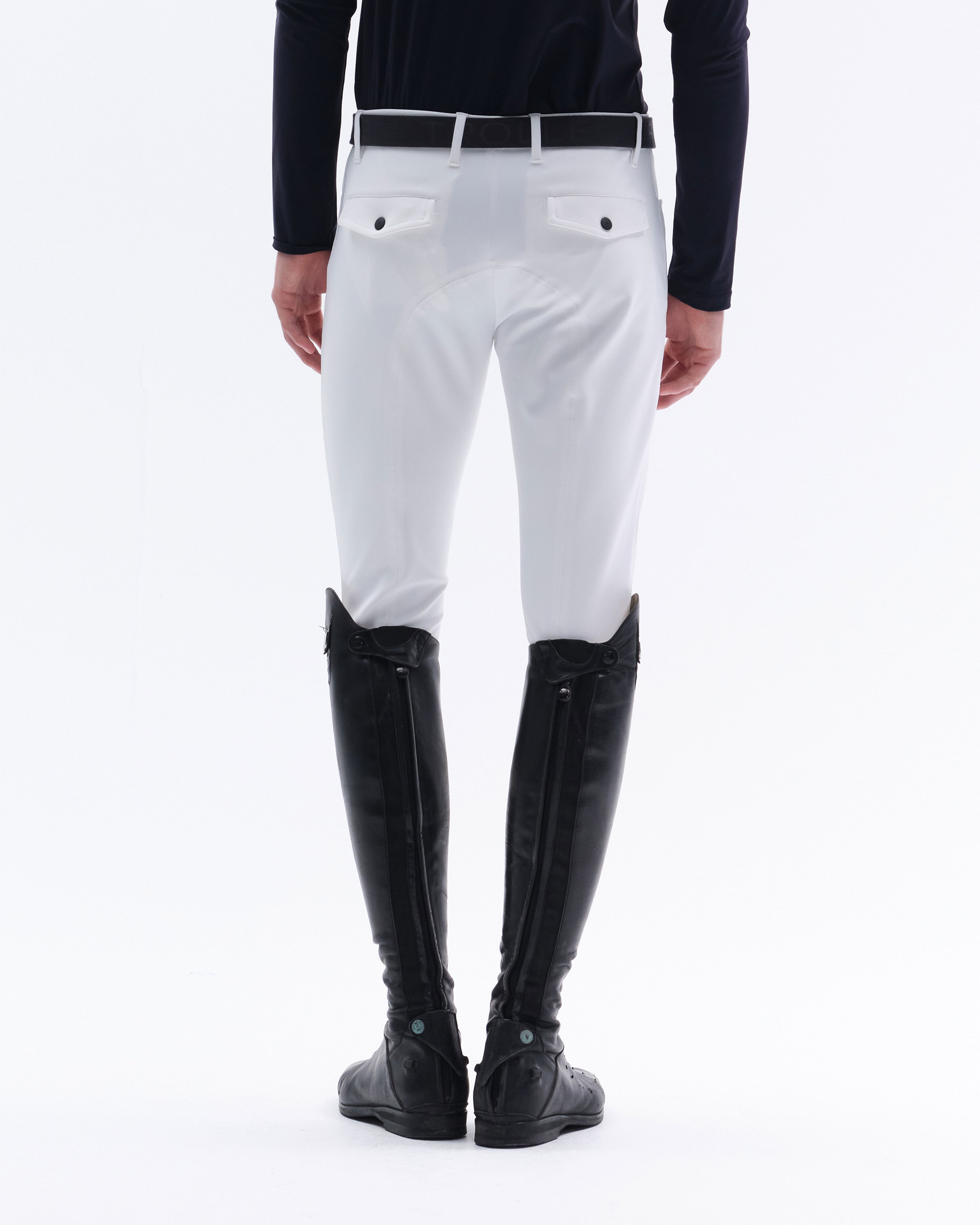 Made from a technical 4-way stretch jersey, these performance breeches deliver exceptional freedom of movement. Their breathable and quick-drying properties enhance both functionality and comfort during intensive activity. Finished with back pockets featuring flat, rubberized snap buttons, ergonomic seams, and silicone grip details on the inner knee, they are engineered for peak performance.